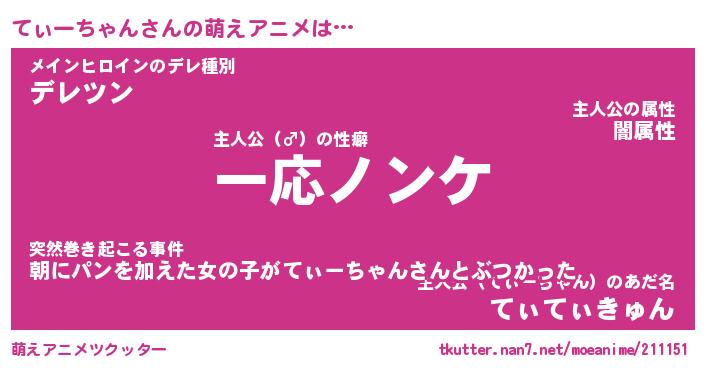 | ツイッター | てぃーちゃんさんのツイッターID『namakemono_star』 |