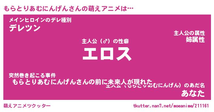 | ツイッター | もらとりあむにんげんさんのツイッターID『namakemono_nyan』 |