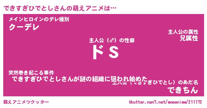 | 女子向けラノベタイトル風あだ名 | 『(仮)できすぎひでとしのやんごとなき事情』 |