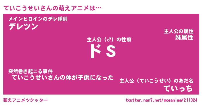 | 男性向けラノベタイトル風あだ名 | 『ていこうせいの憂鬱』 |