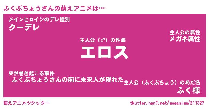| 男性向けラノベタイトル風あだ名 | 『フクブチョウアートオンライン』 |