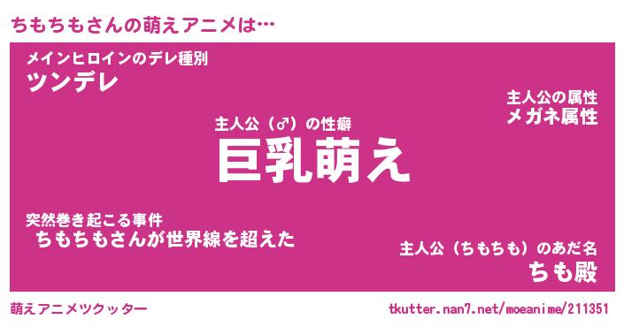 | 男性向けラノベタイトル風あだ名 | 『ちもちもの憂鬱』 |