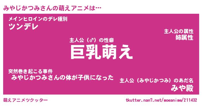 | 男性向けラノベタイトル風あだ名 | 『みやじかつみの憂鬱』 |