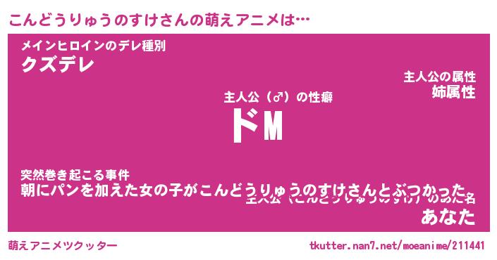 | 男性向けラノベタイトル風あだ名 | 『こんどうりゅうのすけの憂鬱』 |
