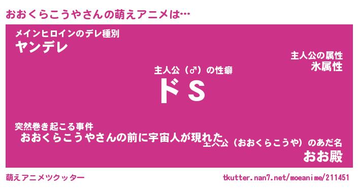 | 男性向けラノベタイトル風あだ名 | 『おおくらこうやの憂鬱』 |