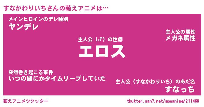 | 女子向けラノベタイトル風あだ名 | 『誰かこのすなかわりいちを説明してください! ~契約から始まるウェディング~』 |