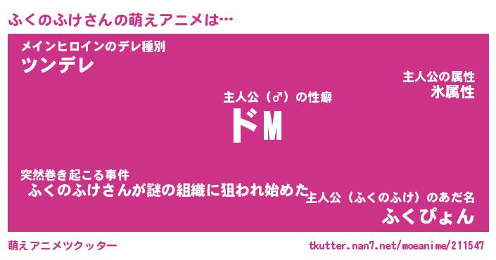 | 男性向けラノベタイトル風あだ名 | 『ふくのふけの憂鬱』 |