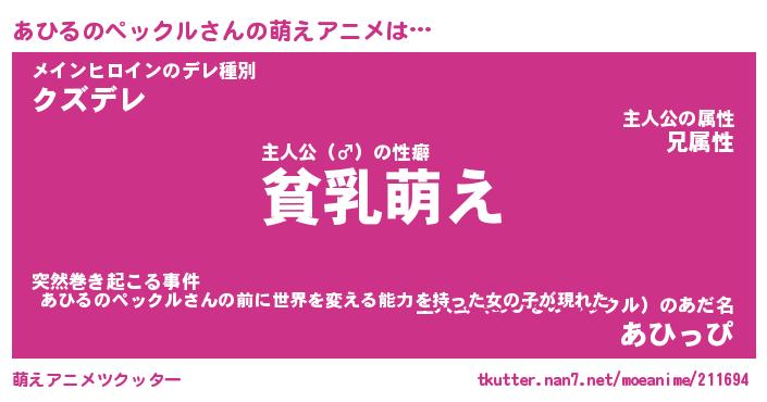 | 男性向けラノベタイトル風あだ名 | 『あひるのペックルの憂鬱』 |