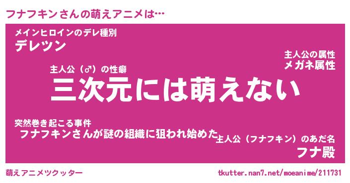 | ファンタジー風あだ名 | 『フナフェル』『エターナルフナフキンー』 |