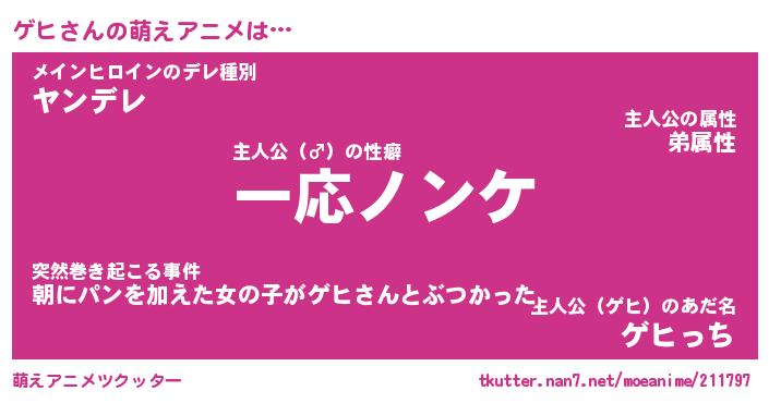 | 男性向けラノベタイトル風あだ名 | 『ゲヒアートオンライン』 |