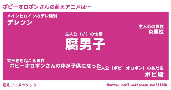 | 男性向けラノベタイトル風あだ名 | 『ボビーオロボンアートオンライン』 |