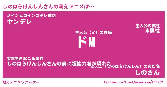 | 女子向けラノベタイトル風あだ名 | 『(仮)しのはらけんしんのやんごとなき事情』 |