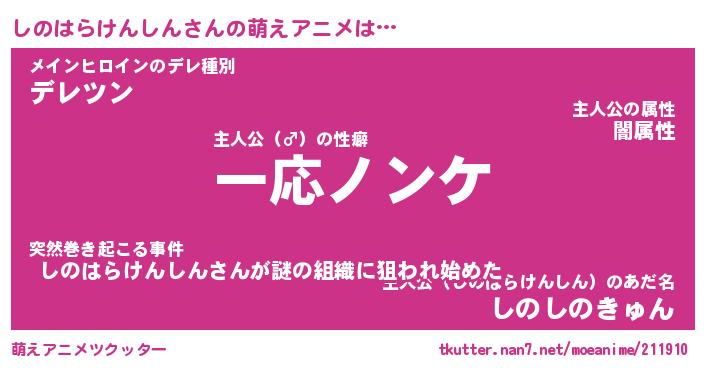 | 女子向けラノベタイトル風あだ名 | 『誰かこのしのはらけんしんを説明してください! ~契約から始まるウェディング~』 |
