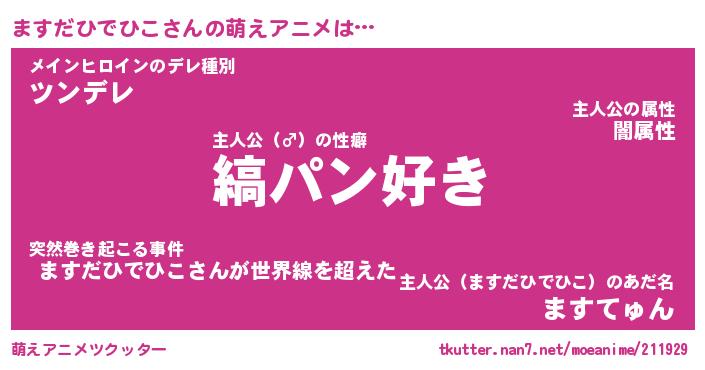 | 女子向けラノベタイトル風あだ名 | 『(仮)ますだひでひこのやんごとなき事情』 |