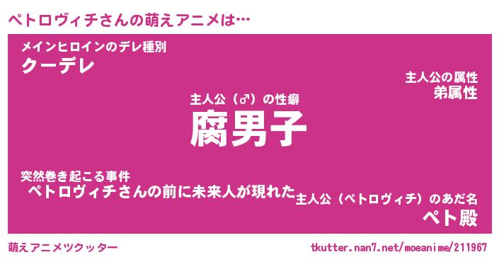 | 料理風あだ名 | 『節約★ペトロヴィチと油揚げの玉子丼』 |