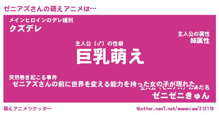 | 料理風あだ名 | 『節約★ゼニアズと油揚げの玉子丼』 |