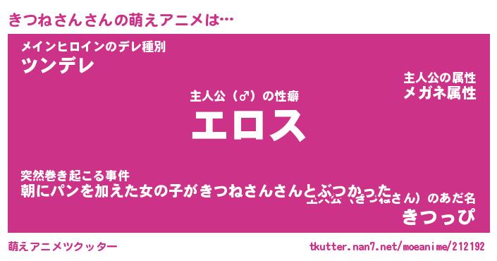 | 男性向けラノベタイトル風あだ名 | 『キツネサンアートオンライン』 |