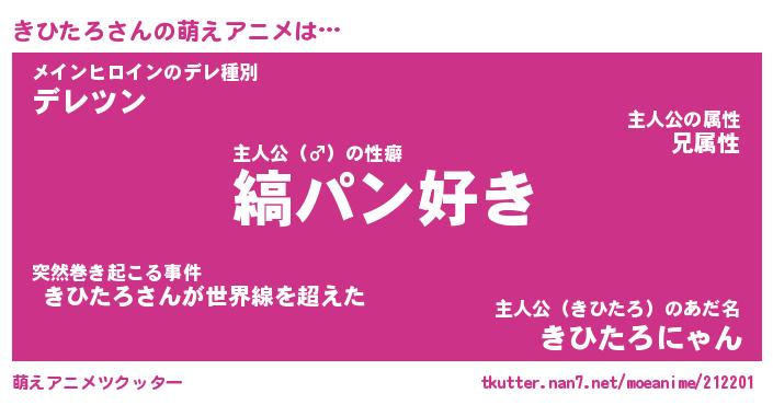 | 男性向けラノベタイトル風あだ名 | 『きひたろの憂鬱』 |
