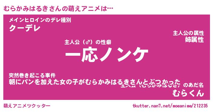| 男性向けラノベタイトル風あだ名 | 『ムラカミハルキアートオンライン』 |