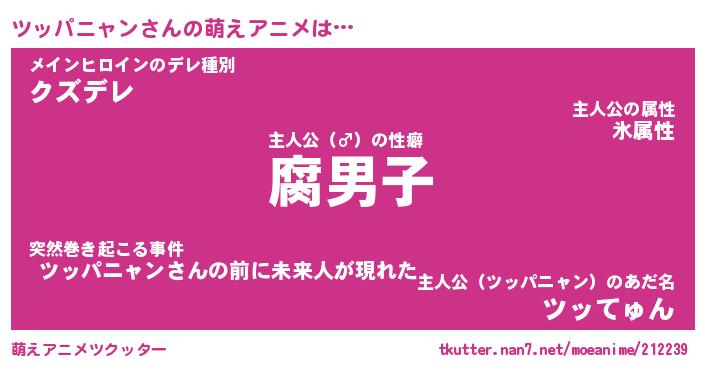 | 男性向けラノベタイトル風あだ名 | 『ツッパニャンアートオンライン』 |
