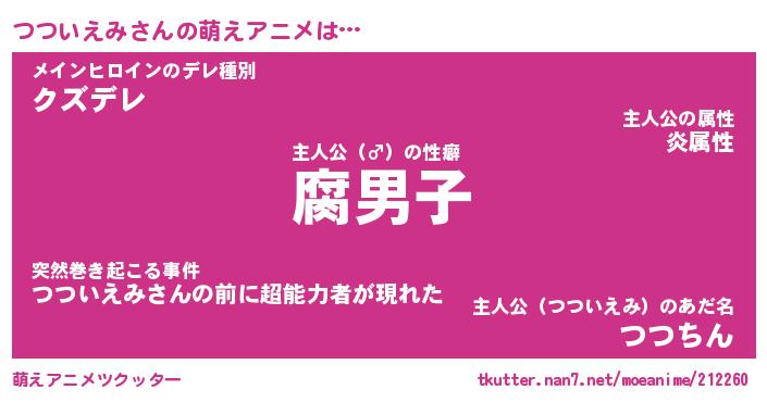 | 料理風あだ名 | 『節約★つついえみと油揚げの玉子丼』 |