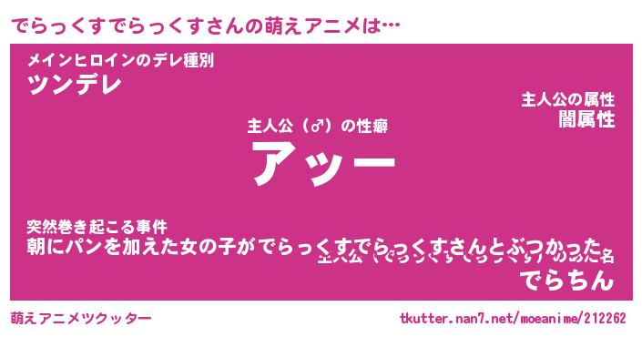 | 自動車の名前っぽいあだ名 | 『デラティマ』『デクア』『デミデ』 |