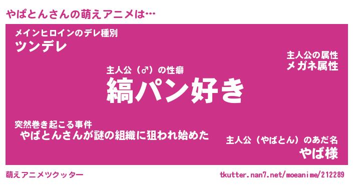 | 男性向けラノベタイトル風あだ名 | 『やばとんの憂鬱』 |