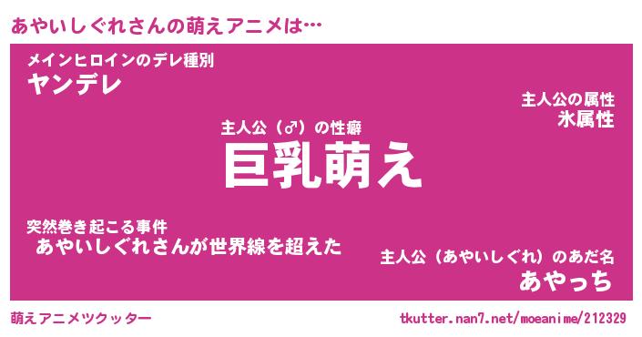 | 男性向けラノベタイトル風あだ名 | 『あやいしぐれの憂鬱』 |