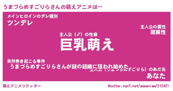 | 肩書あだ名 | 『うまづらめすごりら御曹司』 |