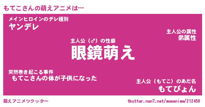 | 男性向けラノベタイトル風あだ名 | 『もてこの憂鬱』 |