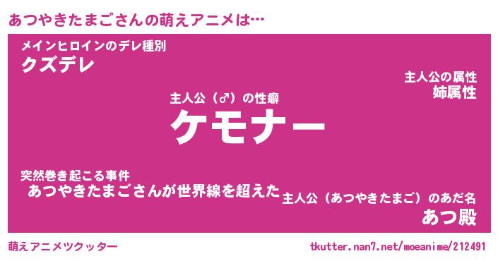 | ツイッター | あつやきたまごさんのツイッターID『fukuyoka_star』 |