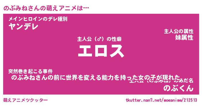 | 2回繰り返すあだ名 | 『のぶのぶ』『ののぶぶ』『くにくに』 |