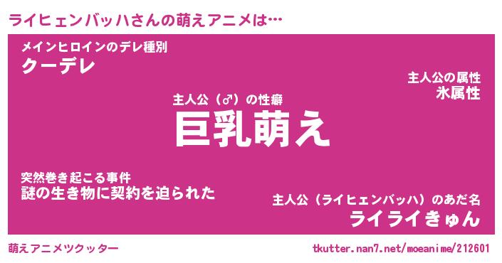 | 料理風あだ名 | 『節約★ライヒェンバッハと油揚げの玉子丼』 |