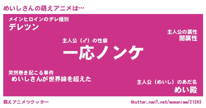 | 男性向けラノベタイトル風あだ名 | 『メイシアートオンライン』 |