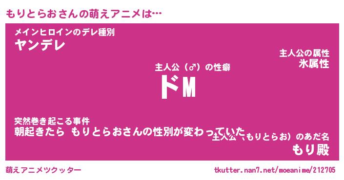 | 男性向けラノベタイトル風あだ名 | 『もりとらおの憂鬱』 |