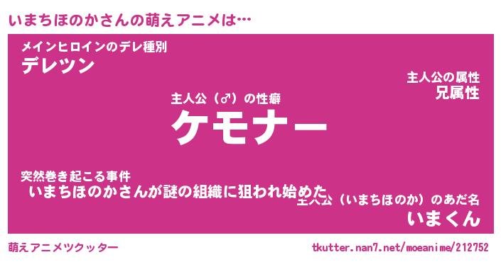 | 男性向けラノベタイトル風あだ名 | 『イマチホノカアートオンライン』 |