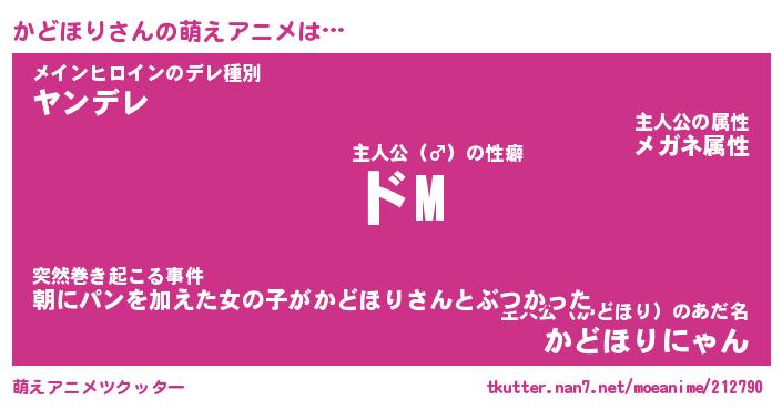 | 男性向けラノベタイトル風あだ名 | 『かどほりの憂鬱』 |