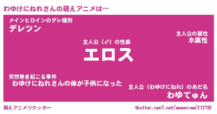 | 女子向けラノベタイトル風あだ名 | 『誰かこのわゆけにねれを説明してください! ~契約から始まるウェディング~』 |