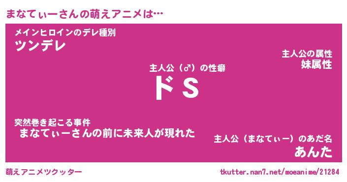 | 男性向けラノベタイトル風あだ名 | 『まなてぃーの憂鬱』 |