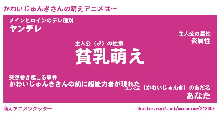 | 男性向けラノベタイトル風あだ名 | 『かわいじゅんきの憂鬱』 |