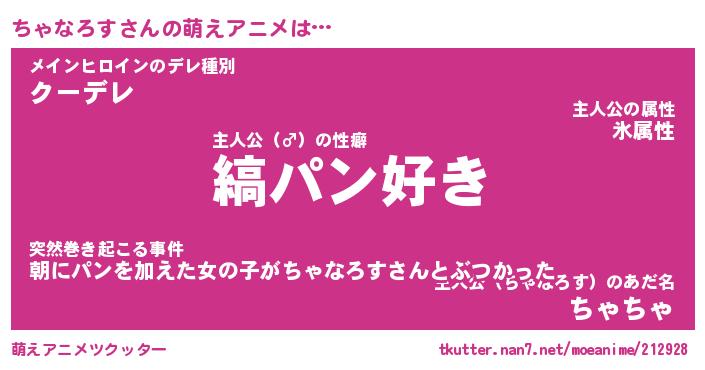 | 男性向けラノベタイトル風あだ名 | 『ちゃなろすの憂鬱』 |