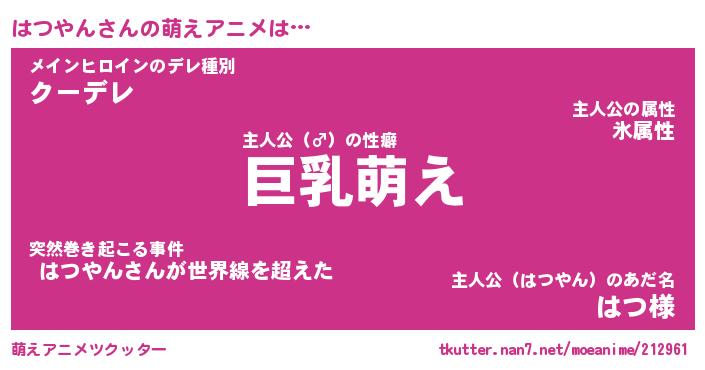 | ファンタジー風あだ名 | 『ハツフェル』『エターナルハツヤンー』 |