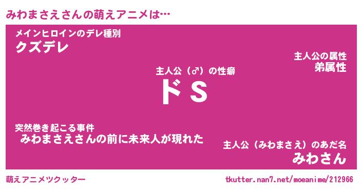 | 女子向けラノベタイトル風あだ名 | 『(仮)みわまさえのやんごとなき事情』 |