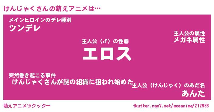 | 男性向けラノベタイトル風あだ名 | 『ケンジャクアートオンライン』 |