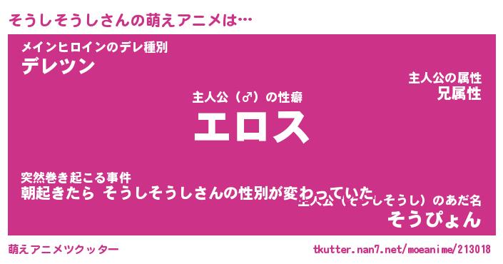 | 男性向けラノベタイトル風あだ名 | 『ソウシソウシアートオンライン』 |