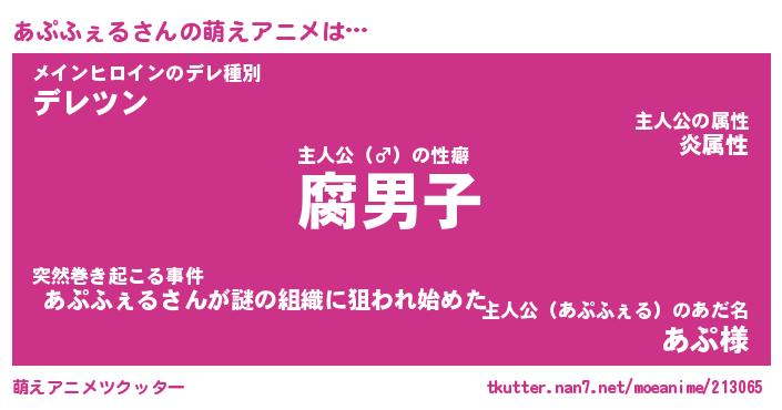 | 料理風あだ名 | 『節約★あぷふぇると油揚げの玉子丼』 |
