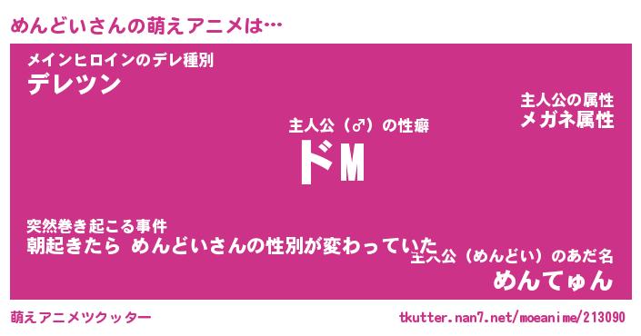 | 男性向けラノベタイトル風あだ名 | 『めんどいの憂鬱』 |
