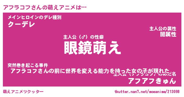 | 男性向けラノベタイトル風あだ名 | 『アフラコフの憂鬱』 |