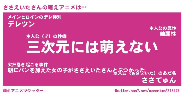 | ヘコむあだ名 | 『ささもー』『豆乳』『ささを』 |