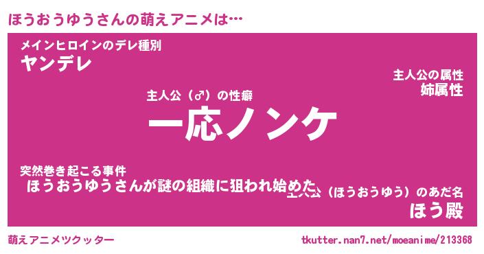 | 男性向けラノベタイトル風あだ名 | 『ホウオウユウアートオンライン』 |